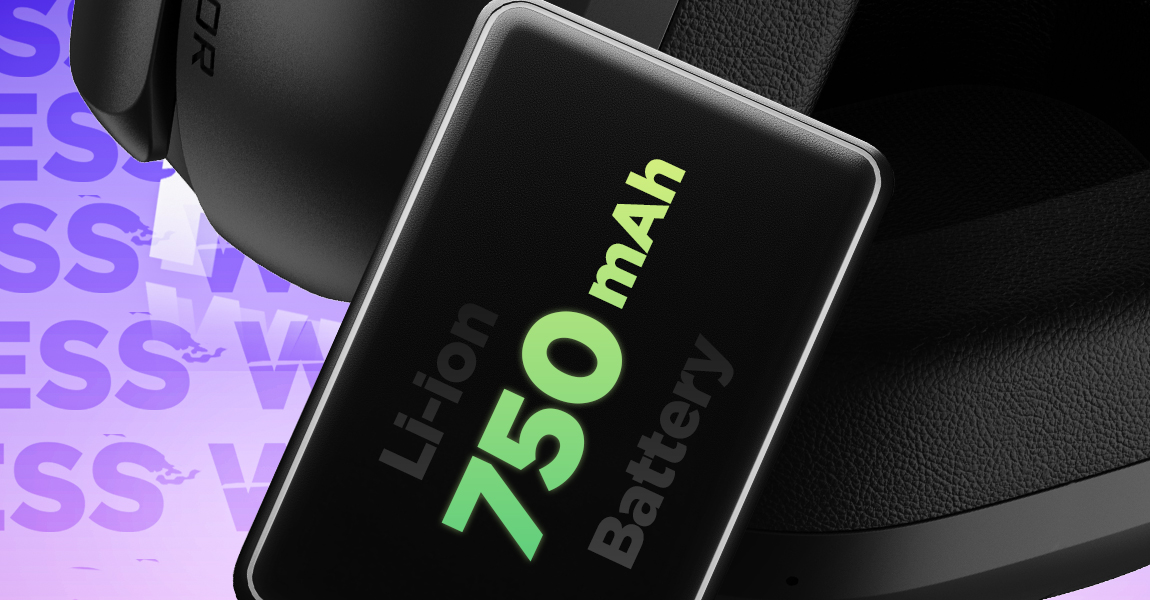 Інноваційний літій-іонний акумулятор з низьким рівнем деградації, ємністю 750мАг, забезпечує автономність гарнітури протягом 70 годин.