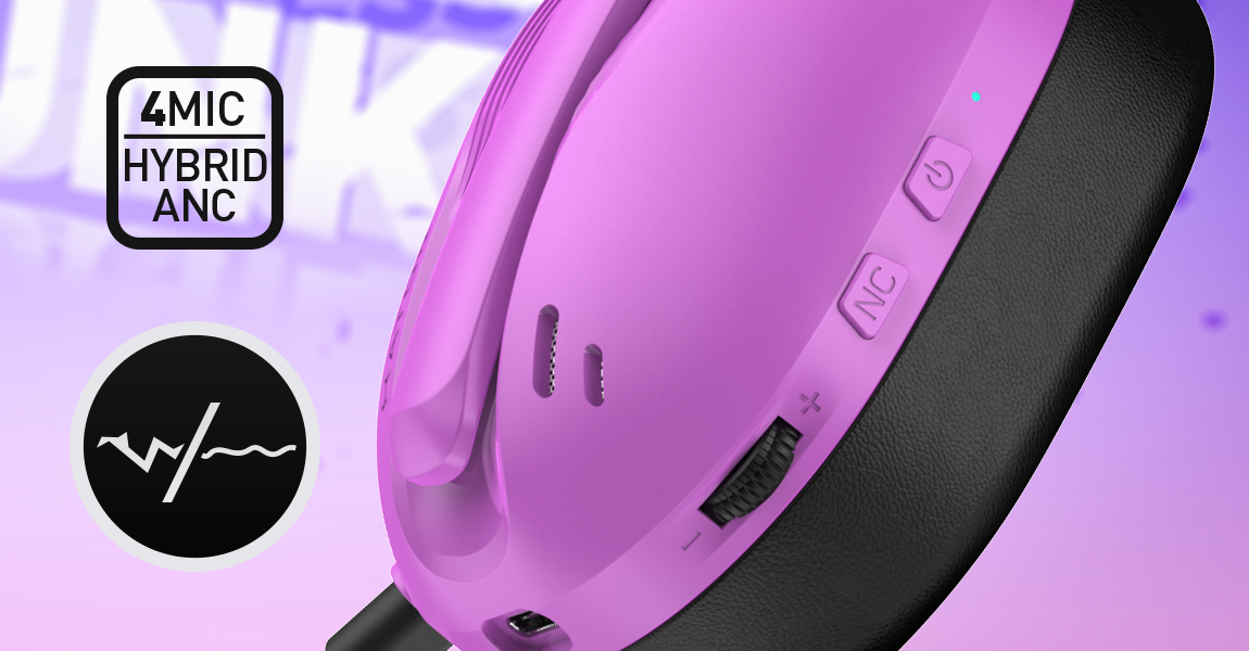 Система активного шумозаглушення Hybrid ANC забезпечується комплексом з чотирьох мікрофонів та окремого процесора, та доступна для двох типів бездротового з’єднання: 2,4ГГц та Bluetooth.