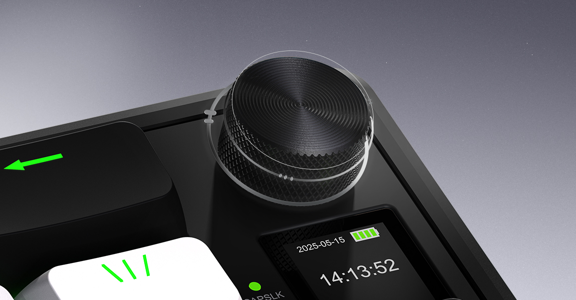 Кноб для управління мультимедіа. Налаштування гучності та Mute завжди під рукою, або інший функціонал, який можна призначити через софт за вашим бажанням.