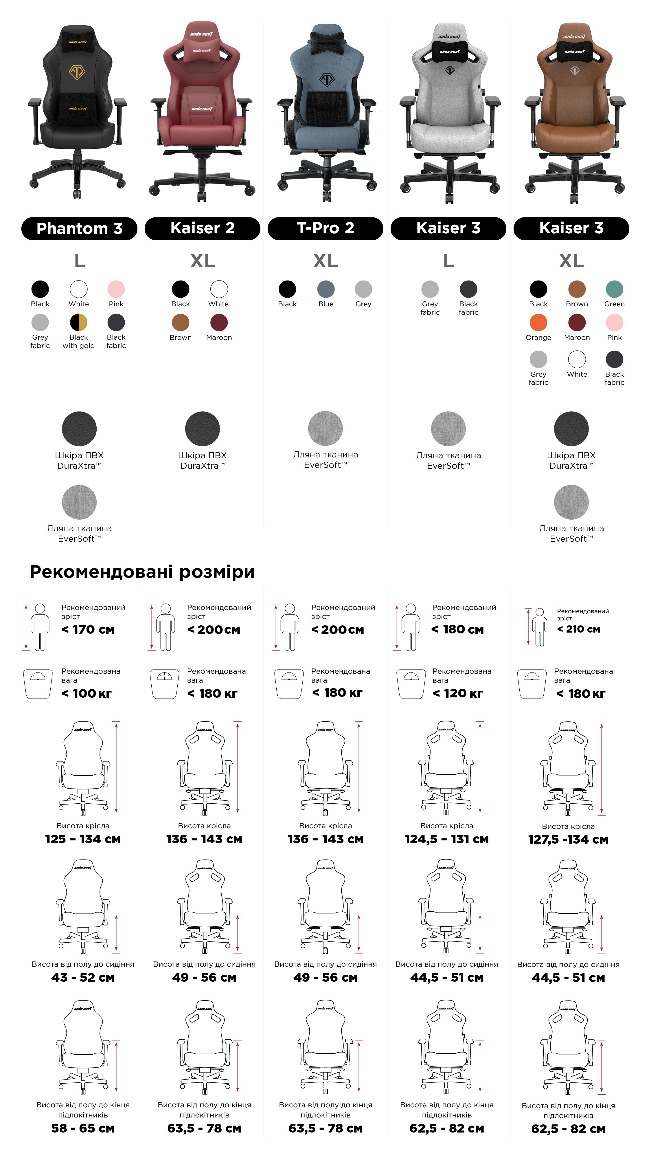 | Тип підлокітників | 4D (регулювання в чотирьох напрямках) |